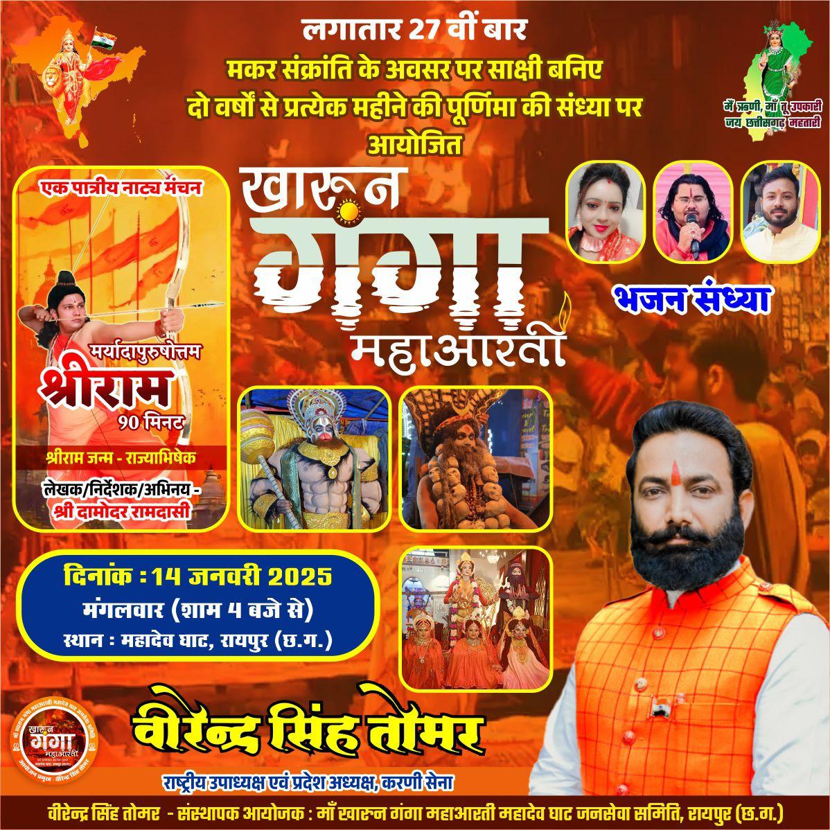 New Bharat news,,,,,,रायपुर।बनारस व प्रयागराज की तर्ज पर खारून गंगा महाआरती का आयोजन राजधानी रायपुर...
