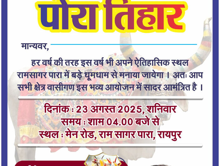 N bharat,,,,रायपुर (छत्तीसगढ़)। पूर्व विधायक विकास उपाध्याय ने छत्तीसगढ़वासियों को पोरा तिहार एवं गणेश चतुर्थी...