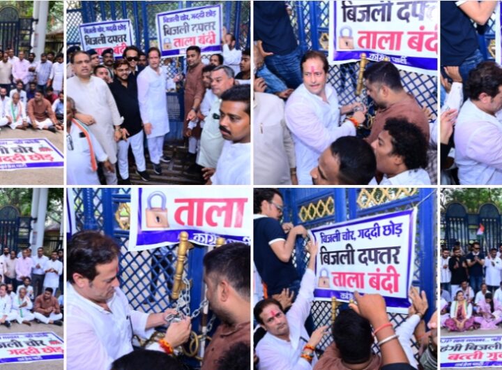 बिजली दफ्तर के मुख्य द्वार पर की ताला बंदी बिजली बिल हाफ योजना को बंद...