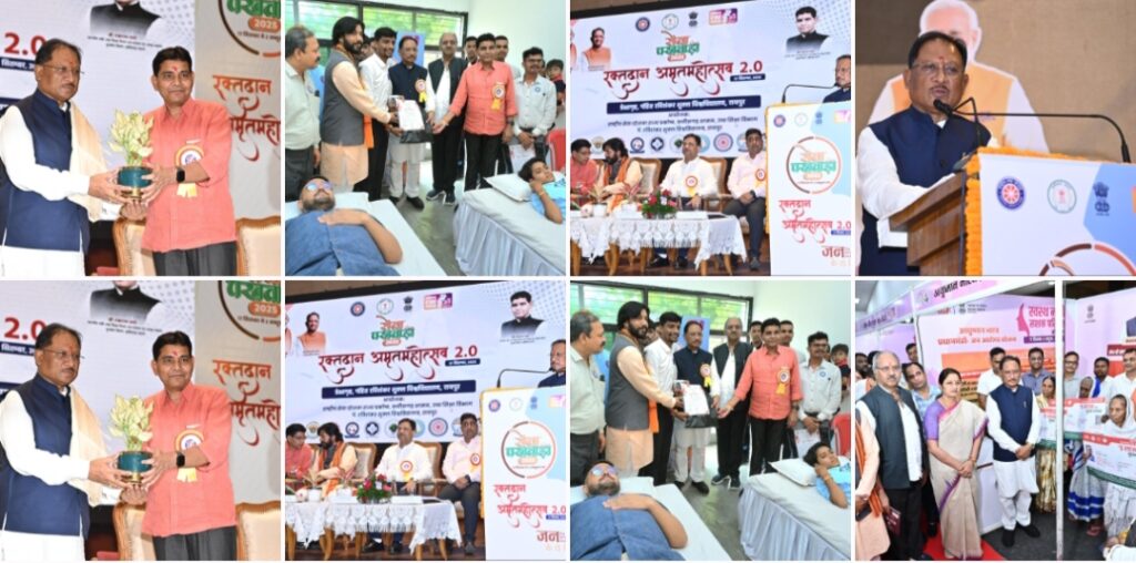 N bharat,,,रायपुर, 17 सितम्बर 2025/ मुख्यमंत्री श्री विष्णुदेव साय आज राजधानी रायपुर स्थित पं. रविशंकर शुक्ल विश्वविद्यालय के प्रेक्षागृह में आयोजित रक्तदान अमृतोत्सव 2.0 कार्यक्रम में शामिल हुए। उन्होंने कहा कि किसी भी क्षेत्र में आगे बढ़ने के लिए शिक्षा अनिवार्य है। शिक्षा केवल डिग्री या नौकरी प्राप्त करने का साधन नहीं, बल्कि जीवन के हर क्षेत्र में सफलता का मूल आधार है।