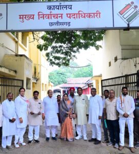 N bharat,,,,रायपुर (छत्तीसगढ़)। पूर्व विधायक विकास उपाध्याय ने बताया कि मुख्य निर्वाचन पदाधिकारी द्वारा बीएलए प्रशिक्षण की तिथि 29 और 30 सितंबर को निर्धारित किया गया था जो कि न्यायसंगत नहीं है क्योंकि छत्तीसगढ़ में नवरात्रि का पावन पर्व चल रहा है और सभी इस पावन पर्व को भक्तिभाव के साथ मनाते हैं। इसलिए इस प्रशिक्षण प्रक्रिया को दिवाली त्यौहार के पश्चात् करने की मांग को लेकर छत्तीसगढ़ प्रदेश कांग्रेस कमेटी का एक प्रतिनिधि मण्डल पूर्व मंत्री धनेंद्र साहू के नेतृत्व में मुख्य निर्वाचन पदाधिकारी आयुक्त पी.सी. ध्रुव से भेंट किये।
