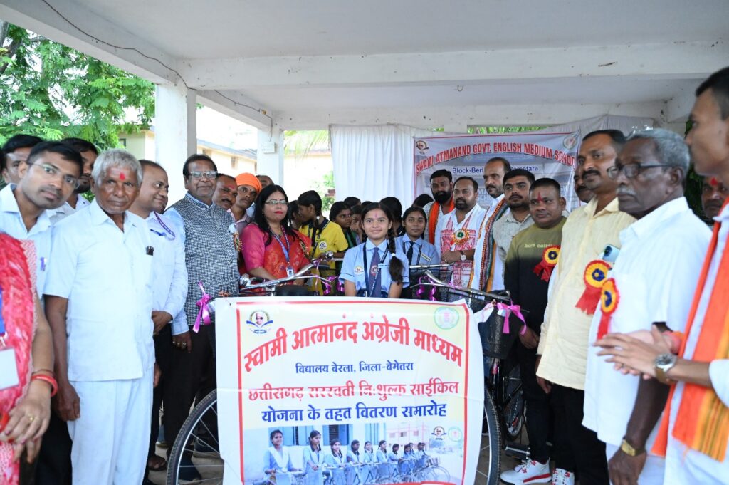 इस अवसर पर मुख्यमंत्री सरस्वती साइकिल योजना अंतर्गत 23 बालिकाओं को साइकिल वितरण किया गया। साथ ही नवनियुक्त छात्र पदाधिकारियों को विधायक श्री साहू ने हार्दिक बधाई एवं शुभकामनाएँ प्रेषित करते हुए कहा कि—बेरला का यह विद्यालय आज शिक्षा की गुणवत्ता और गतिविधियों के स्तर पर एक नई पहचान बना रहा है। यहाँ के बच्चे न केवल पढ़ाई में उत्कृष्ट प्रदर्शन कर रहे हैं बल्कि सांस्कृतिक, खेलकूद और सामाजिक गतिविधियों में भी अपनी प्रतिभा का परचम लहरा रहे हैं। मुख्यमंत्री सरस्वती साइकिल योजना से बालिकाएँ शिक्षा की मुख्यधारा से और मजबूती से जुड़ रही हैं। विधायक दीपेश साहू ने कहा की यह योजना बेटियों को स्कूल आने जाने मे सुविधा प्रदान कर उनकी शिक्षा को सुलभ बनाने और आत्मनिर्भरता को प्रोत्साहित करने के उद्देस्य से की गई l इस योजना की सराहना करते हुए विधायक साहू ने कहा की कहा कि यह कदम ग्रामीण क्षेत्रों में बेटियों की शिक्षा को बढ़ावा देने में मील का पत्थर साबित होगा। साइकिल वितरण से छात्राओं को स्कूल पहुंचने में होने वाली कठिनाइयों में कमी आएगी और उनकी नियमित उपस्थिति सुनिश्चित होगी।कार्यक्रम के दौरान स्कूली छात्राओं द्वारा प्रस्तुत देशभक्ति गीतों ने पूरे वातावरण को देशप्रेम और ऊर्जा से भर दिया। विधायक श्री साहू ने बच्चों की प्रस्तुतियों की सराहना करते हुए कहा कि—हमारे नौनिहालों की ऐसी सांस्कृतिक गतिविधियाँ उनकी छिपी प्रतिभा को निखारती हैं और एक उज्ज्वल एवं सशक्त भविष्य की दिशा में उन्हें आगे बढ़ाती हैं।”