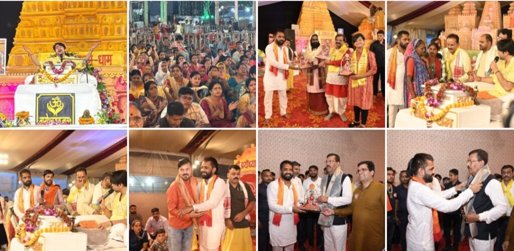 N bharat,,,,रायपुर।* युवा समाजसेवी चंदन – बसंत अग्रवाल (थान खम्हरिया वाले) के नेतृत्व में स्व. श्री पुरुषोत्तम अग्रवाल स्मृति फाउंडेशन के तत्वावधान में दही हांडी उत्सव स्थल,अवधपुरी मैदान, श्रीनगर रोड, गुढिय़ारी में चल रहे बागेश्वर धाम पीठाधीश्वर पूज्य पं. धीरेंद्र कृष्ण शास्त्री की हनुमंत कथा के तीसरे दिन मुस्लिम समाज के सलमान ने जहां हिन्दु धर्म को अपनाया वहीं ओडिया समाज की बिन्दु बाई और श्रीमती निर्मला ने ईसाई धर्म को छोड़कर फिर से हिन्दु धर्म अपनाकर घर वापसी की। इससे पूर्व लोक कलाकार दिलीप षडंगी, कांता सरण और अरु साहू का सम्मान भी किया गया। कथा समाप्त के बाद मंगलवार को रात को 9.30 बजे पूज्य पं. धीरेंद्र कृष्ण शास्त्री अपने ऑफिशयल फेसबुक और यूट्यूब चैनल पर आम जनता से लाईव बातचीत करेगे और अभी तक 1 करोड़ 6 लाख यूट्यूब पर और फेसबुक पर भी एक करोड़ लोग जुड़ चुके है। मंगलवार को भी बागेश्वर धाम पीठाधीश्वर पूज्य पं. धीरेंद्र कृष्ण शास्त्री का दिव्य दरबार 12 बजे लगेगा और इस बार प्रेत राज सरकार का दरबार लगेगा। वहीं सुबह 9 बजे बागेश्वर धाम पीठाधीश्वर पूज्य पं. धीरेंद्र कृष्ण शास्त्री दीक्षा ग्रहण करने वाले भक्तजनों को दीक्षा देंगे।