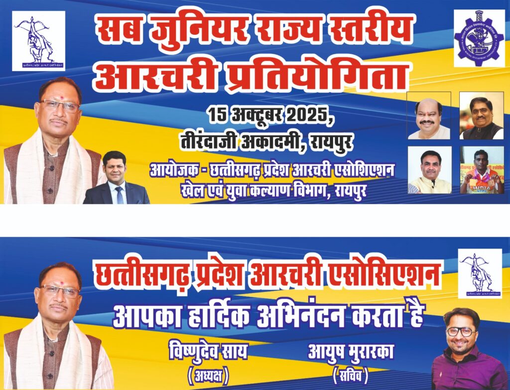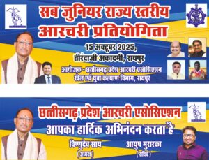 अत्यत गर्व एवं हर्ष का विषय है कि आगामी 15 अक्टूबर 2025 को रायपुर में 25वां सब जूनियर बालक-बालिका प्रतियोगिता का भव्य आयोजन रायपुर में किया जा रहा है इस भव्य प्रतियोगिता में राष्ट्रीय एवं प्रदेश स्तर के तीरंदाज जिले के कोने-कोने से सम्मिलित होंगे। यह हमारे जिले हेतु अत्यंत हर्ष एवं गौरव की बात है। इस भव्य आयोजन में आपकी उपस्थिति, सहयोग, मार्गदर्शन हमारे लिए चिरस्मरणीय बनाए रखेगी। इस पत्र को हमारा आमंत्रण पत्र स्वीकार कर अवश्य पधारे।