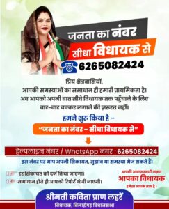 विधायक कविता प्राण लहरें ने कहा कि “जनता की समस्याओं का समाधान मेरी सर्वोच्च प्राथमिकता है। कई बार लोग कार्यालय तक नहीं पहुंच पाते, इसलिए अब वे सीधे इस हेल्पलाइन नंबर के जरिए मुझसे जुड़ सकते हैं।”