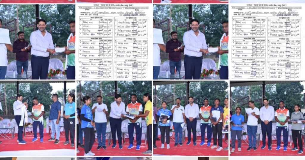 मुरारका ने आगे कहा कि इस *प्रतियोगिता में पैरा तीरंदाज टोमन कुमार का शाल श्रीफल* से और ₹50000 पच्चास हजार रु का नगद पुरस्कार चेक द्वारा छत्तीसगढ़ तीरंदाजी संघ के अध्यक्ष छत्तीसगढ़ के मुख्यमंत्री श्री विष्णु देव सहाय के नेतृत्व में संघ ने चेक प्रदान किया ,