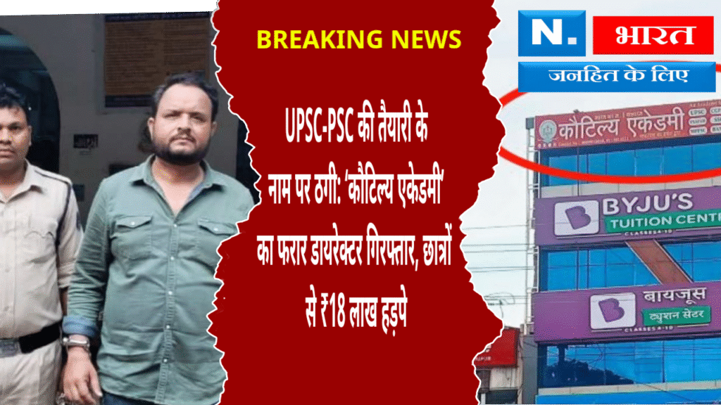 रायपुर। राजधानी रायपुर में प्रतियोगी परीक्षाओं की तैयारी कराने के नाम पर छात्रों से ठगी करने वाले ‘कौटिल्य एकेडमी’ के डायरेक्टर को पुलिस ने गिरफ्तार कर लिया है। आरोपी पवन टांडेश्वर ने अपनी पत्नी रूबी मजूमदार के साथ मिलकर यूपीएससी (UPSC) और पीएससी (PSC) की तैयारी के लिए छात्रों से ₹18 लाख से अधिक की रकम वसूली थी और बाद में संस्थान बंद कर फरार हो गया था।