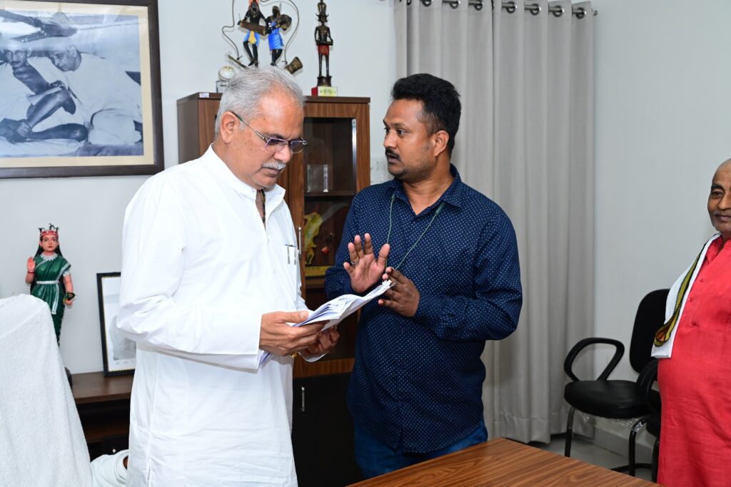 N bharat,,,,रायपुर/26 अक्टूबर 2025/ महिला बाल विकास विभाग के अंतर्गत कार्यरत दैनिक वेतन भोगी कर्मचारियों को आज भी श्रम सम्मान राशि से वंचित रखा गया है। इस संबंध में अभय सिंह द्वारा पूर्व मुख्यमंत्री श्री भूपेश बघेल से मुलाकात कर उन्हें पूरे प्रकरण की जानकारी दी गई।