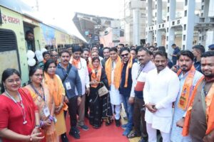 N bharat,,,,राजधानी रायपुर में छत्तीसगढ़ सरकार द्वारा प्रदेशवासियों की आस्था और श्रद्धा को मूर्त रूप देने हेतु प्रारंभ की गई ‘रामलला दर्शन योजना’ के अंतर्गत आज रायपुर रेलवे स्टेशन से रायपुर संभाग के विधानसभा के श्रद्धालु विशेष ट्रेन से अयोध्या धाम के दर्शन के लिए रवाना हुए। इस पवित्र यात्रा के शुभारंभ पर धरसींवा विधायक अनुज शर्मा शामिल होकर सभी श्रद्धालुओं को हार्दिक शुभकामनाएं दीं और उनकी यात्रा के मंगलमयी होने की कामना की।