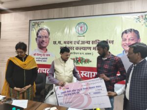 कार्यक्रम के दौरान श्रम मंत्री ने मुख्यमंत्री निर्माण श्रमिक मृत्यु एवं दिव्यांग सहायता योजना के अंतर्गत चंगोराभाटा निवासी झम्मन यादव को एक लाख रूपए की सहायता राशि का चेक, मुख्यमंत्री नोनी सक्तिकरण सहायता योजना के तहत फाफाडीह रायपुर निवासी रेणु मिश्रा एवं उदिया सोसायटी टाटीबंद की दीपा साहू को 20-20 हजार रूपए का चेक, दीदी ई-रिक्शा सहायता योजना के अंतर्गत कुशालपुर रायपुर निवासी श्रीमती रेश्मी बाई, प्रोफेसर कॉलोनी रायपुर की लता देवांगन, कोटा रायपुर की हेमलता साहू एवं सड्डू रायपुर की भुवनेश्वरी साहू को एक-एक लाख रूपए की चेक प्रदाय किया गया।