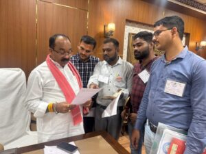 छत्तीसगढ़ विधानसभा में आज एम ए छत्तीसगढ़ी छात्र संगठन के पदाधिकारीयों ने राज्य के दोनों उपमुख्यमंत्री से उनके कक्ष में जाकर मुलाकात किया ।एम ए छत्तीसगढ़ी छात्र संगठन के प्रदेश अध्यक्ष ऋतुराज साहू ने दोनों उपमुख्यमंत्रियों को छत्तीसगढ़ी भाषा के आवश्यक मुद्दों को लेकर मुलाकात किया ,साहू ने उपमुख्यमंत्रियों को अवगत कराया की छत्तीसगढ़ी भाषा जिसमें उनकी ही सरकार ने 2007 में राजभाषा का दर्जा दिया था ,उसमें स्कूली शिक्षा नई शिक्षा नीति का स्पष्ट पालन करते हुए प्राथमिक शिक्षा छत्तीसगढ़ी में लागू किया जाए। दूसरा है कि स्कूली शिक्षा विभाग पुरानी पद्धति के तहत द्विभाषा फॉर्मूला लागू करने जा रही है, इस पर तुरंत रोक लगाकर अलग विषय के रूप में छत्तीसगढ़ी भाषा का पाठ्यक्रम तुरंत तैयार कर जून 2025 सत्र से छत्तीसगढ़ी अनिवार्य रूप से पढ़ाया जाए,