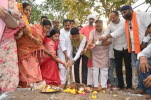 राजस्व मंत्री श्री टंकराम वर्मा ने आज बलौदाबाजार प्रवास के दौरान सर्किट हॉउस के पीछे कांक्रिट नाली निर्माण कार्य का भूमिपूजन विधिवत पूजा अर्चना कर किया। यह कार्य करीब 18 लाख रुपये की लागत से नगर पालिका बलौदाबाजार द्वारा किया जाएगा।