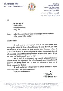 N bharat,,,,,रायपुर 30, मई 2025।* छत्तीसगढ़ विधानसभा नेता प्रतिपक्ष डॉ.चरणदास महंत ने छत्तीसगढ़ के मुख्यमंत्री विष्णुदेव साय, विधानसभा अध्यक्ष डॉ रमन सिंह को पत्र लिखकर नवीन विधानसभा नया रायपुर में संविधान निर्माता भारत रत्न बाबा साहेब भीमराव अंबेडकर जी की प्रतिमा लगाये जाने को लेकर पत्र लिखा है।