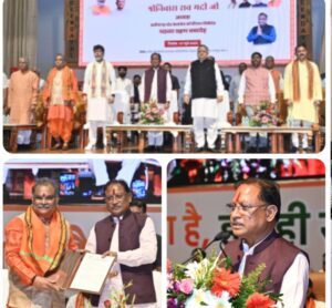 N bharat,,,,,रायपुर 7 जून 2025/ मुख्यमंत्री श्री विष्णु देव साय आज राजधानी रायपुर स्थित पंडित दीनदयाल उपाध्याय ऑडिटोरियम में छत्तीसगढ़ स्टेट बेवरेजेस कॉर्पोरेशन के नव नियुक्त अध्यक्ष श्रीनिवास मद्दी के पदभार ग्रहण एवं अभिनंदन समारोह में मुख्य अतिथि के रूप में शामिल हुए। इस अवसर पर उन्होंने श्री मद्दी को नई जिम्मेदारी के लिए हार्दिक शुभकामनाएं दीं।