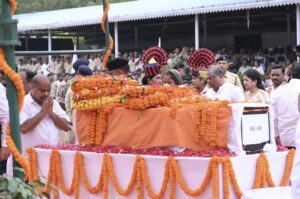 N bharat,,,,,रायपुर। आज माना पुलिस कैम्प में शहीद एएसपी श्री आकाश राव गिरिपुंजे जी के पार्थिव शरीर पर रायपुर विधायक पुरन्दर मिश्रा ने मुख्यमंत्री विष्णु देव साय, विधानसभा अध्यक्ष डॉ रमन सिंह जी, के साथ पुष्प अर्पित कर नमन किया और कंधा देकर अंतिम विदाई दी। विधायक पुरन्दर मिश्रा ने कहा उनकी शहादत को पूरे क्षेत्र में गर्व और श्रद्धा के साथ याद किया जाएगा। इस दुख की घड़ी में उनके परिवार के प्रति संवेदनाएं व्यक्त करता हूँ। भगवान उनकी आत्मा को शांति प्रदान करे और परिवारजनों को इस दुख को सहन करने की शक्ति दे।