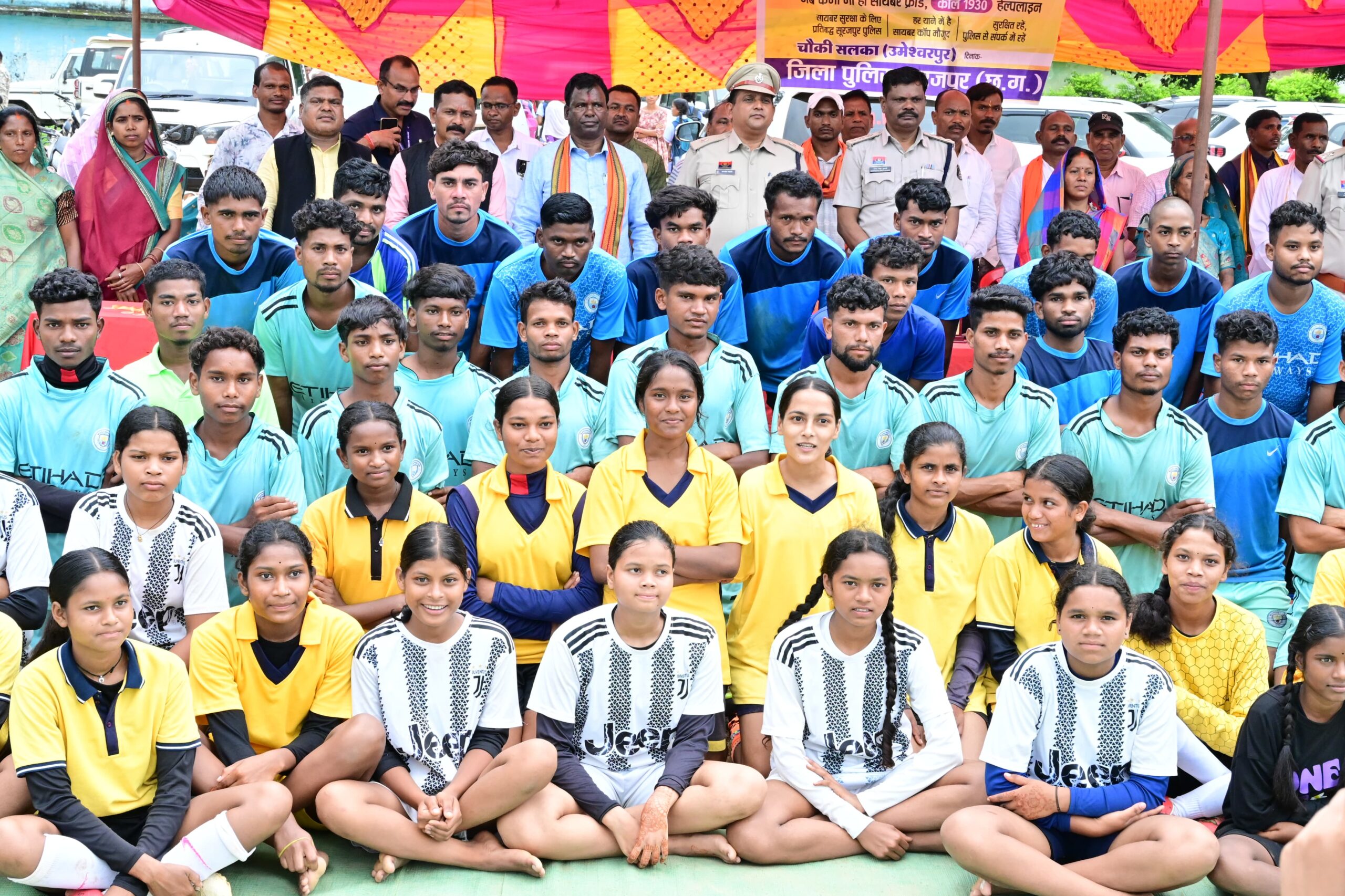 N bharat,,,,सूरजपुर जिले के सलका उमेश्वरपुर में,नशा मुक्ति जागरूकता अभियान के तहत नवजीवन फुटबॉल प्रतियोगिता 2025 का आयोजन उमेश्वरपुर ग्राउंड में संपन्न हुआ इस प्रतियोगिता में चौकी सलका उमेश्वरपुर क्षेत्र के कुल 10 टीमों ने भाग लिया था तथा दो महिला टीमों ने भाग लिये, जिसका फाइनल मैच पार्वतीपुर ग्राम एवं उमेश्वरपुर ग्राम के खिलाड़ियों के मध्य मैच हुआ जिसमें एक गोल से पार्वतीपुर की टीम विजय हुई उपविजेता उमेश्वरपुर की टीम रही