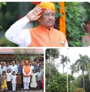 मुख्यमंत्री श्री विष्णु देव साय ने स्वतंत्रता दिवस के अवसर पर राजधानी रायपुर स्थित मुख्यमंत्री निवास परिसर में ध्वजारोहण किया। इस अवसर पर उन्होंने सभी को स्वतंत्रता दिवस की हार्दिक बधाई और शुभकामनाएं दीं।