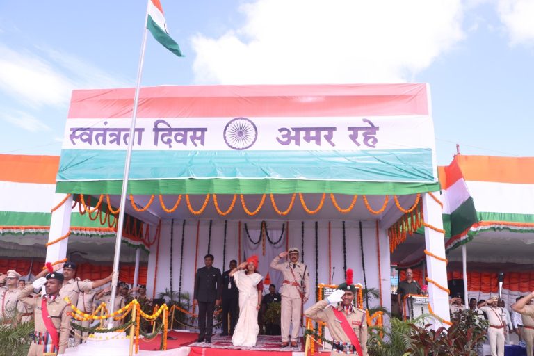 सूरजपुर। जिले में 79वां स्वतंत्रता दिवस समारोह हर्ष और उल्लास के साथ मनाया गया। मुख्य कार्यक्रम सूरजपुर स्टेडियम ग्राउंड में आयोजित हुआ, जहां मुख्य अतिथि महिला एवं बाल विकास मंत्री लक्ष्मी राजवाड़े ने ध्वजारोहण कर परेड की सलामी ली।