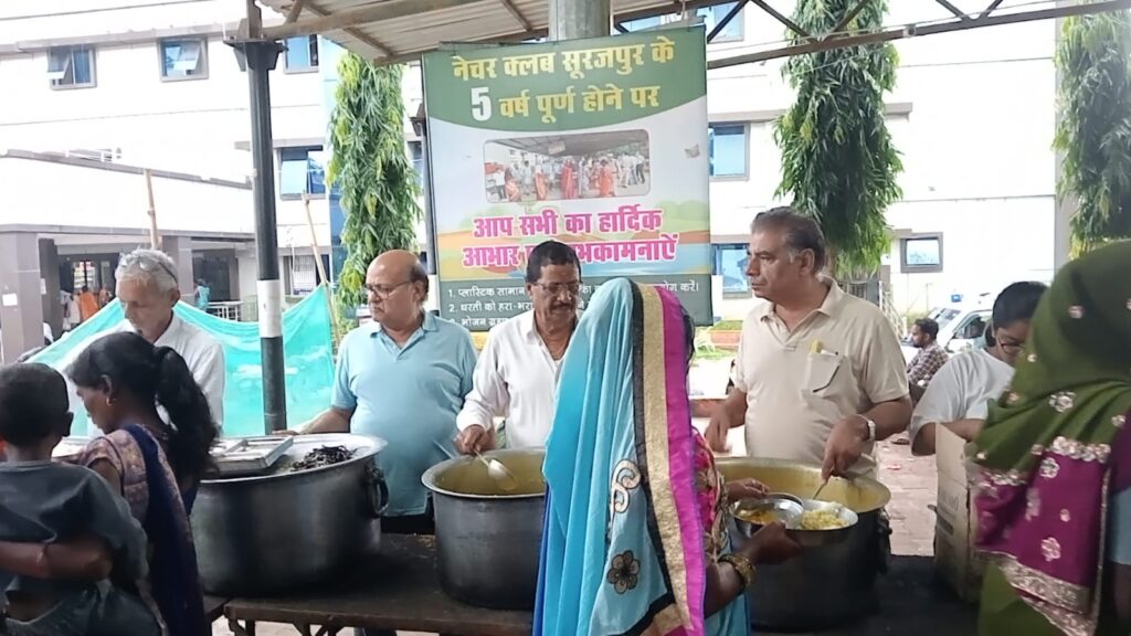 नेचर क्लब सूरजपुर के सदस्यों द्वारा प्रतिदिन शाम 6 से 7 बजे तक भोजन और सुबह 8 बजे नाश्ता जिला अस्पताल परिसर में वितरित किया जाता है। यह सेवा उन गरीब व दूरदराज से आए मरीजों के लिए बड़ी राहत बन चुकी है, जो उपचार के लिए सूरजपुर आते हैं, लेकिन भोजन की व्यवस्था उनके लिए एक अतिरिक्त बोझ बन जाती है।