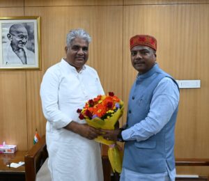 N bharat,,,,रायपुर/जगदलपुर। प्रदेश के वनमंत्री केदार कश्यप एक दिवसीय दिल्ली प्रवास पर हैं जहाँ उन्होंने ने छत्तीसगढ़ के विकास और उन्नति को लेकर केंद्रीय वन, पर्यावरण एवं जलवायु परिवर्तन मंत्री भूपेंद्र यादव से सौजन्य भेंट की। इस अवसर पर उन्होंने केंद्रीय मंत्री भूपेंद्र यादव से विभिन्न विषयों पर सार्थक चर्चा हुई। वनमंत्री कार्यालय छत्तीसगढ़ शासन से मिली जानकारी के अनुसार छत्तीसगढ़ में वन क्षेत्रों में हो रहे कार्य, एक पेड़ माँ के नाम 2.0 सहित हाथी मानव द्वन्द को लेकर जानकारी प्रदान करते हुए मंत्री केदार कश्यप ने आवश्यक मांगों पर केंद्रीय मंत्री भूपेंद्र यादव का ध्यान आकृष्ट किया है।