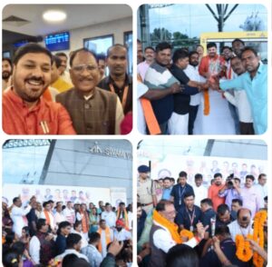 N bharat,,,,रायपुर, 30 अगस्त 2025/ अपनी आठ दिन के जापान और दक्षिण कोरिया के विदेश दौरे के बाद आज मुख्यमंत्री श्री विष्णु देव साय वापस रायपुर लौटे हैं। श्री साय के वापस लौटने पर आज एयरपोर्ट पर उनका भव्य स्वागत किया गया। छत्तीसगढ़ के पारंपरिक कर्मा और पंथी नृत्यों से पूरा एयरपोर्ट परिसर लगभग एक घंटे तक सराबोर रहा। लोगों की बड़ी संख्या में मौजूदगी ने मुख्यमंत्री श्री साय की लोकप्रियता और उनके विदेश दौरे की सफलता को स्वयं ही बयां कर दिया। मुख्यमंत्री का पुष्प गुच्छों से लेकर गजमाला तक से स्वागत किया गया। एयरपोर्ट के निकास द्वार से मीडिया गैलेरी तक लगभग 100 मीटर की दूरी तय करने में श्री साय को लगभग 15 मिनट लगे। इस दौरान लोगों ने पुष्प वर्षा से भी श्री साय का स्वागत किया। बाद में मुख्यमंत्री ने उपस्थित जनसमुदाय को सम्बोधित किया और इस भव्य स्वागत के लिए सभी का आभार जताया। मुख्यमंत्री ने कहा कि जापान और दक्षिण कोरिया दोनों ही देशों में बड़ा भारतीय समुदाय बसा हुआ है और हमारे छत्तीसगढ़ के लोग भी वहां पर व्यापारिक कार्यों में लगे हुए हैं। उनसे मिलकर मुझे बहुत अच्छा महसूस हुआ और यह लगा ही नहीं कि हम परदेश में हैं। उन्होंने कहा कि हमारे उद्यमी, हमारे कारोबारी पूरी दुनिया में फैले हुए हैं और भारत भूमि का नाम हर तरफ रोशन कर रहे हैं।