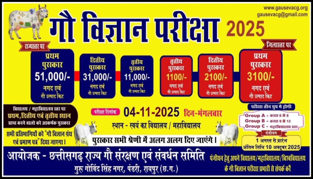 बैठक में छत्तीसगढ़ राज्य गौ संरक्षण एवं संवर्धन समिति के विभाग संयोजक रेवा यादव तथा जिला संयोजक राजेश साहू ने परीक्षा को अनुशासन, पारदर्शिता और प्रभावशीलता के साथ संपन्न कराने पर बल दिया। उन्होंने कहा कि यह पहल केवल परीक्षा तक सीमित नहीं रहेगी, बल्कि समाज में गौ सेवा की भावना को जन-आंदोलन का स्वरूप दिया जाएगा।
